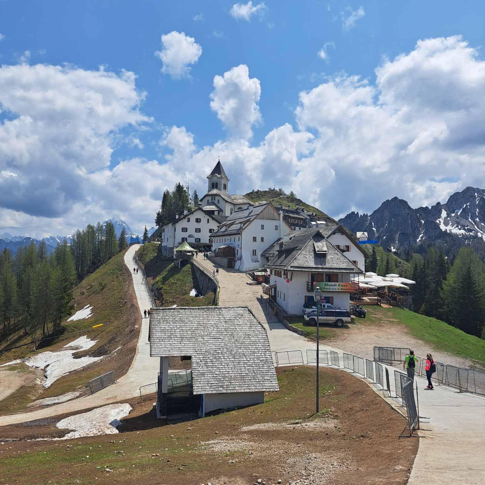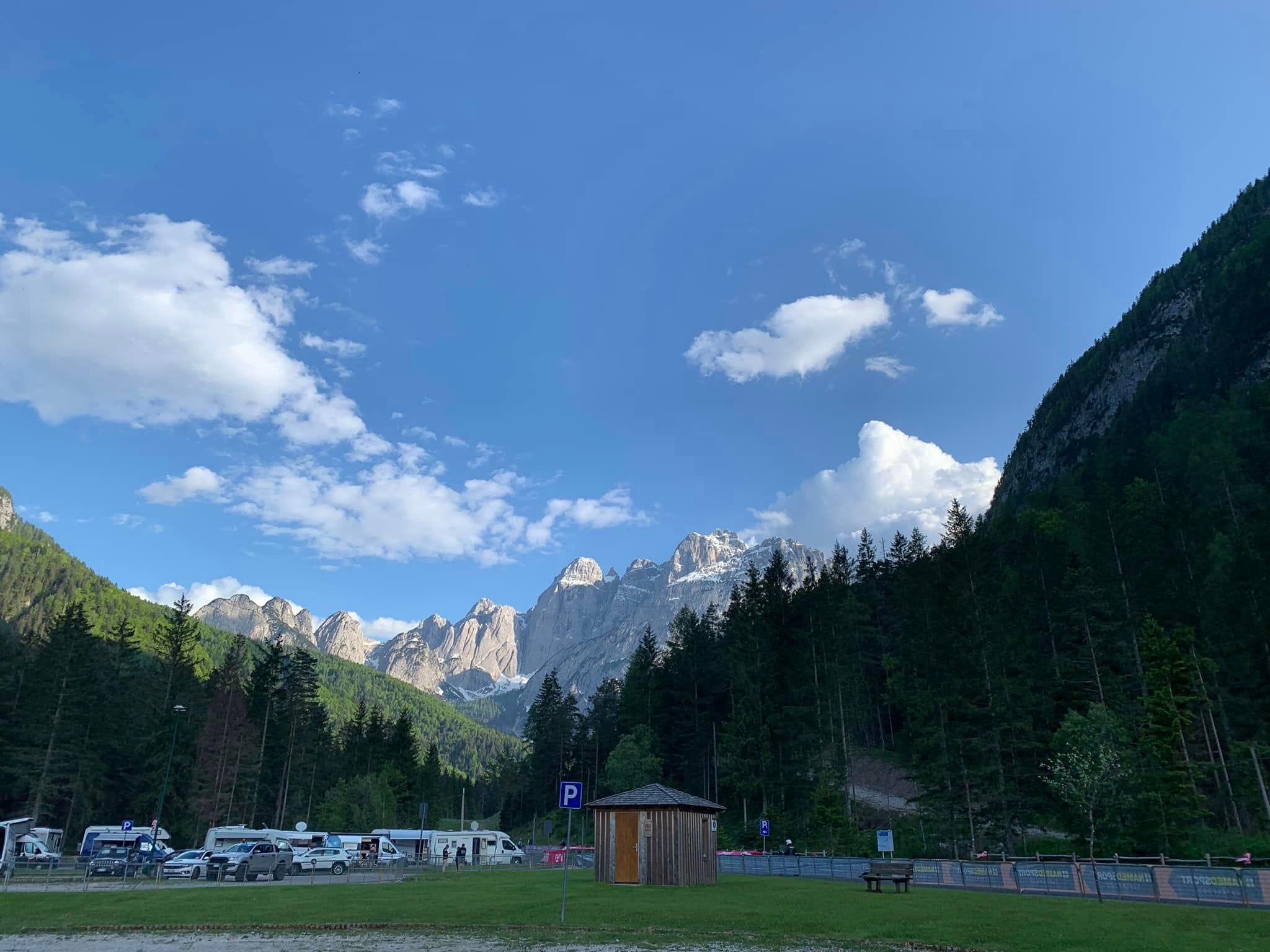 The penultimate stage of the Giro d’Italia 2023 was truly special, as it nearly touched the Slovenian border. It took place on Monte Lussari, known in Slovenian as Svete Višarje. The weekend before the race, we decided to scout the area to find the best spot for parking and cheering for our champion, Primož Roglič. The trip was very successful; we hiked part of the ascent along the road and found an excellent parking spot in the valley, a little further from the village of Valbruna (Ovčja vas), just before the climb to Monte Lussari.