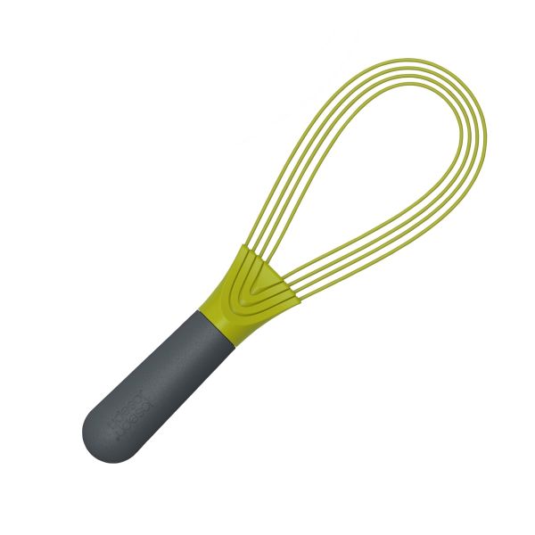 This clever 2-in-1 whisk features a rotating handle that allows you to switch effortlessly between balloon whisking and flat whisking. Its folding design ensures convenient, space-saving storage in any kitchen drawer. The whisk can be separated into parts for easy cleaning and is safe to use with non-stick cookware. Dishwasher-safe.