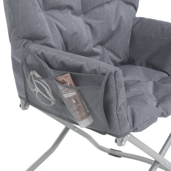 With the padded folding armchair Grenada Lake from Outwell, you will feel at home anywhere. The chair folds flat quickly when not needed, making it ideal for travel or storage. Its soft, detachable padding provides excellent comfort and support exactly where you need it. A practical side pocket offers convenient storage for small essentials.