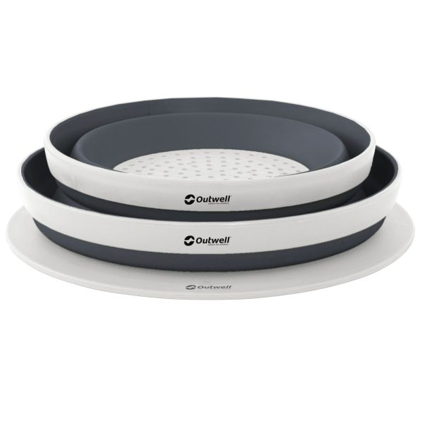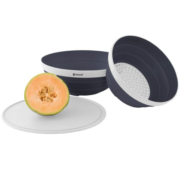 This practical folding bowl set includes a lid and a sieve that can be neatly packed together to save space. Both the bowl and the sieve are easy to open and fold. The multifunctional lid doubles as a cutting board with a convenient juice groove, making it ideal for camping, picnics, or home use. Made from BPA-free materials for safe food handling.