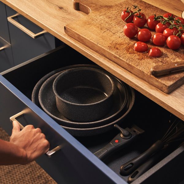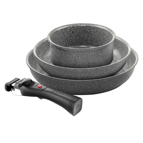 Komplet ponv Torre znamke Ballarini združuje inovativnost, prilagodljivost in italijansko kakovost, ki navduši v vsaki kuhinji. Zaradi odstranljivih ročajev lahko ponve enostavno uporabljate z različnimi posodami, jih postavite v pečico ali priročno zložite eno v drugo, da prihranite prostor. Odporne so na temperaturo do 230 °C in primerne za vse vrste kuhalnih plošč, kar omogoča vsestransko uporabo.