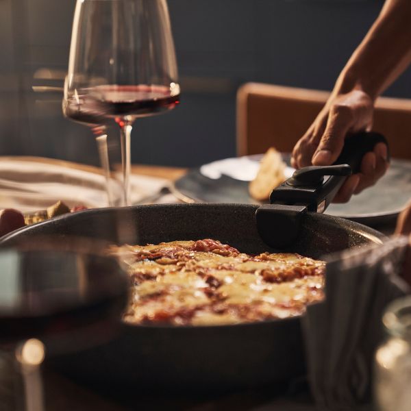 Ponev Torre s snemljivim ročajem združuje inovativnost in funkcionalnost za vsakodnevno kuhanje. Zaradi vsestranske zasnove je primerna za uporabo na vseh vrstah kuhalnih plošč ter v pečici, kjer je odporna na temperature do 230 °C. Trpežen keramični premaz Ceraforce® Granitium zagotavlja odličen učinek proti prijemanju in dolgo življenjsko dobo, hkrati pa ne vsebuje PFAS. Radiantno indukcijsko dno omogoča hitro in enakomerno porazdelitev toplote za popolne rezultate pri kuhanju. Ergonomsko oblikovan ročaj s silikonskimi vložki prenese do 10 kg teže in ščiti površino posode pred praskami. Snemljiv ročaj omogoča tudi prostorsko varčno shranjevanje in enostavno zlaganje. Ponev Torre združuje italijansko kuharsko tradicijo z modernimi kuhinjskimi inovacijami za vrhunsko kuharsko izkušnjo.