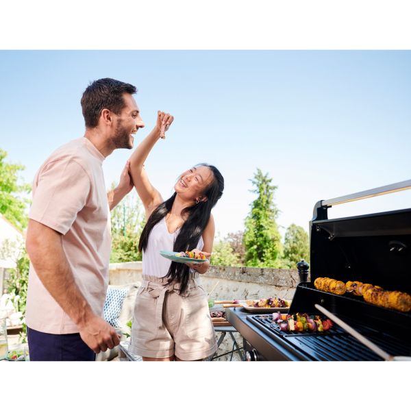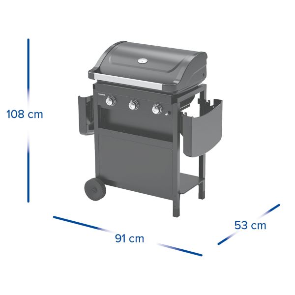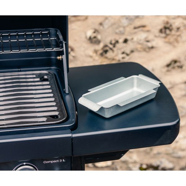 Plinski žar Campingaz Compact navdušuje z elegantnim dizajnom in odličnim razmerjem med ceno in kakovostjo. Opremljen je s tremi zmogljivimi gorilniki iz aluminiziranega jekla, ki zagotavljajo enakomerno porazdelitev toplote po celotni površini za peko. Tako lahko učinkovito izkoristite vsak del rešetke in dosežete enakomerno pripravljeno hrano. Po uporabi lahko obe stranski polici zložite za prihranek prostora, dve veliki kolesi pa omogočata enostavno premikanje.