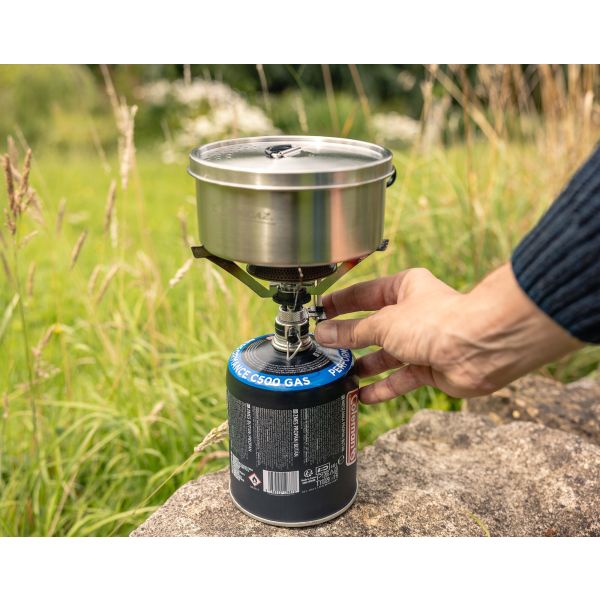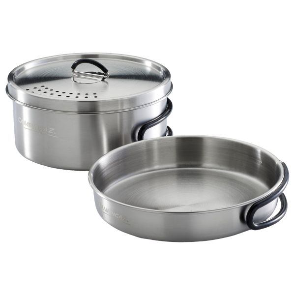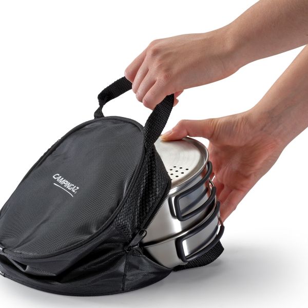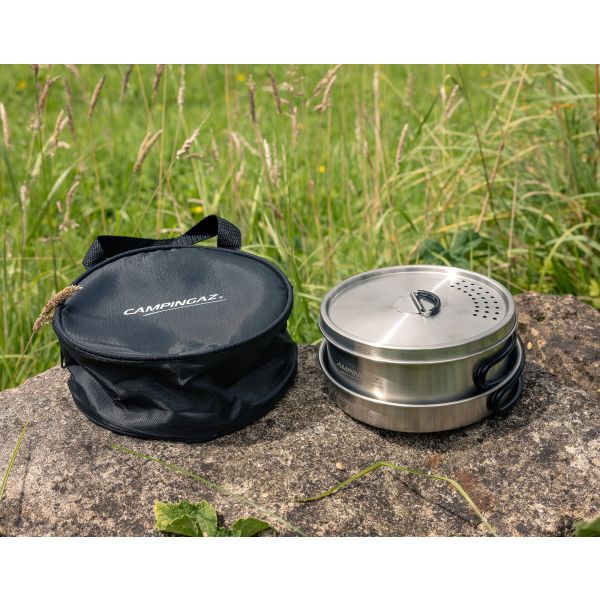 Odkrijte kakovosten kuhalni set iz nerjavnega jekla, zasnovan za praktično kuhanje na prostem. Ergonomski silikonski ročaji zagotavljajo varen in udoben oprijem, kompaktne mere pa omogočajo enostavno pakiranje in čiščenje. Set je odlična izbira za manjše družine na kampiranju.