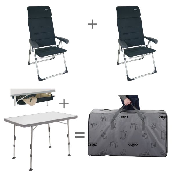 Komplet stolov in mize Crespo Valencia je bil posebej razvit za manjše avtodome in kombije ter združuje udobje, funkcionalnost in kompaktne mere.