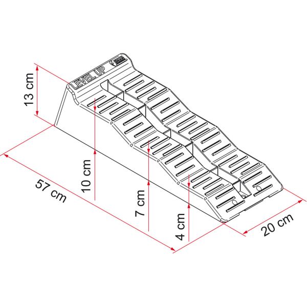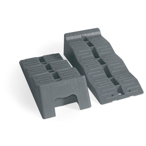 Visokokakovostni nastavki za izravnavo — original proizvajalca Fiamma. Lahki, vzdržljivi in nedrseči. Zanesljivo preprečujejo nevšečnosti parkiranja na naklonu, saj omogočajo stabilno in enakomerno oporo pod pnevmatikami. Nedrseča površina se dobro oprime pnevmatik in prepreči drsenje. Brez korozije, enostavni za čiščenje in odporni proti lomljenju. Idealni za avtodome in prikolice. Izdelani iz trpežnega HD polietilena z UV zaščito. Na voljo tri višinske stopnje za fleksibilno izravnavo in optimalno nastavitev.