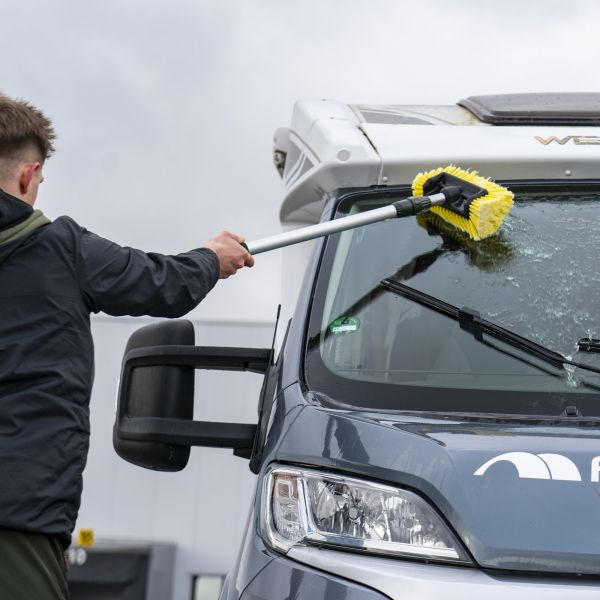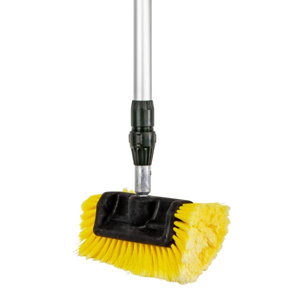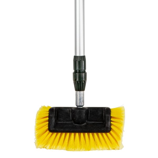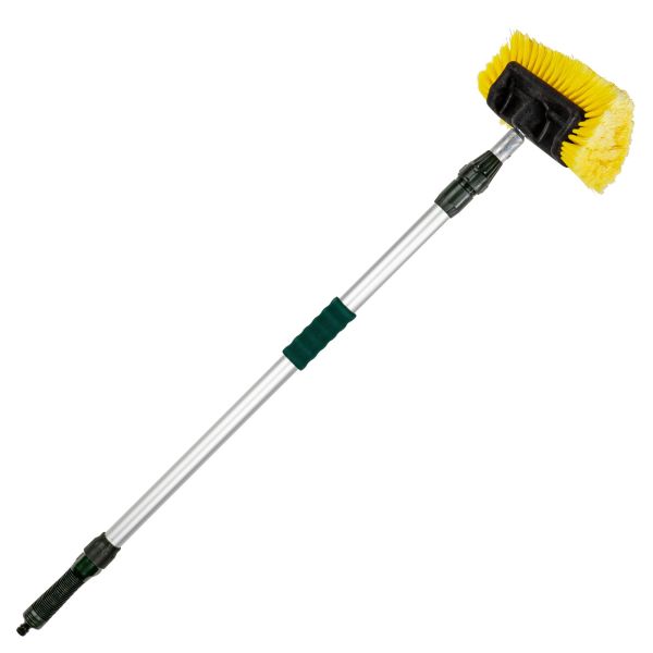 Univerzalna čistilna krtača FF omogoča enostavno in temeljito čiščenje vašega avtodoma ali prikolice. Mehke stranske ščetine zagotavljajo nežno, a učinkovito pranje ter omogočajo, da dosežete vse kotičke vozila. Ojačana teleskopska aluminijasta palica nudi stabilnost in trpežnost, kovinski priključek za krtačo ter okrepljen ročaj pa poskrbita za zanesljiv oprijem. Ročaj ima 19 mm priključek za cev (združljiv z Gardeno) in praktično stikalo za vklop/izklop vode. Krtača je združljiva z različnimi nastavki – krpami, glavami krtač in brisalniki – zato lahko sistem po potrebi razširite.