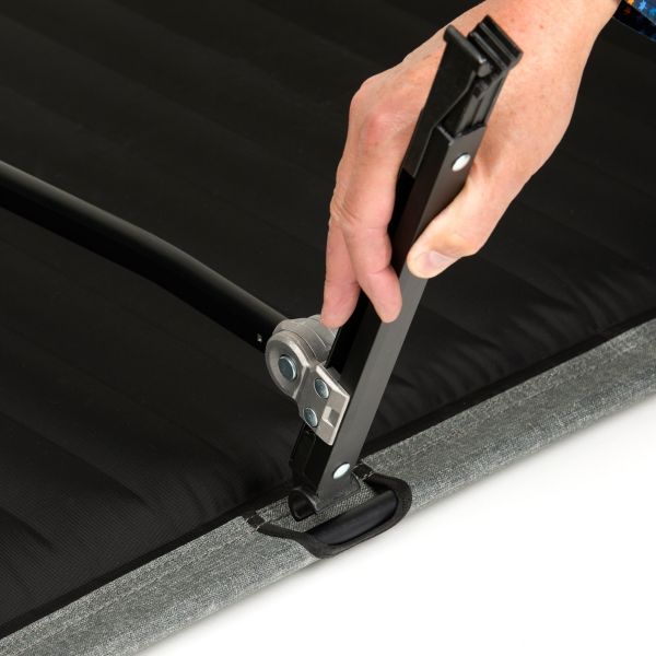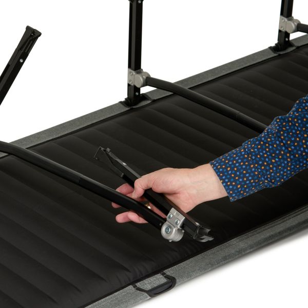 Postelja je še posebej hitro sestavljiva, zato se lahko sprostite v najkrajšem možnem času. Posebnost je izjemno udobna napihljiva ležalna površina, ki jo je mogoče uporabljati tudi ločeno, na primer kot samostojno napihljivo ležišče.