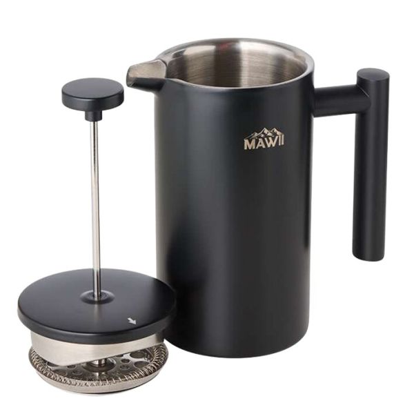 Ta visokokakovostna francoska preša iz nerjavnega jekla združuje sodoben videz in trpežno izdelavo. Dvoslojna konstrukcija omogoča odlično toplotno izolacijo, zato kava ali čaj ostaneta vroča do 3 ure, pri tem pa ohranita polno aromo. Izdelek je zasnovan za vsakodnevno uporabo in dolgotrajno zadovoljstvo vseh ljubiteljev kave in čaja.