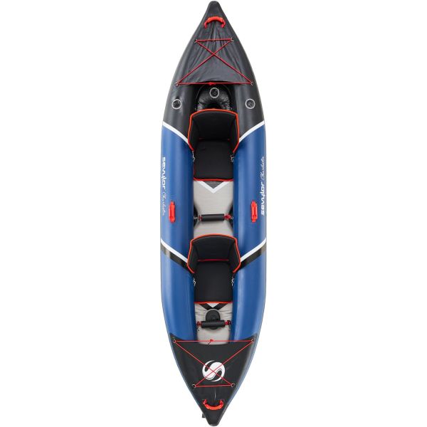 Napihljiv kajak Sevylor Charleston iz PVC z Drop-Stitch tehnologijo in športno zasnovo. Dva termooblikovana sedeža, možnost uporabe za 1 ali 2 osebi in hitro sušeč material.